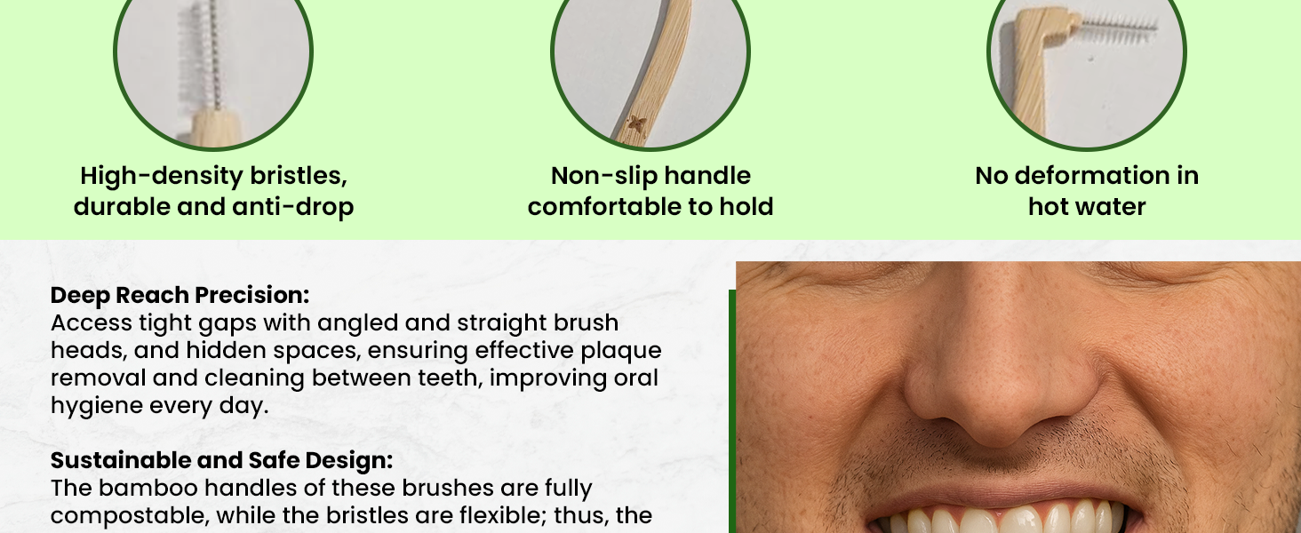 Keep your teeth clean and your planet green with our eco-friendly Bamboo Interdental Brushes — designed to reach where your toothbrush can’t!